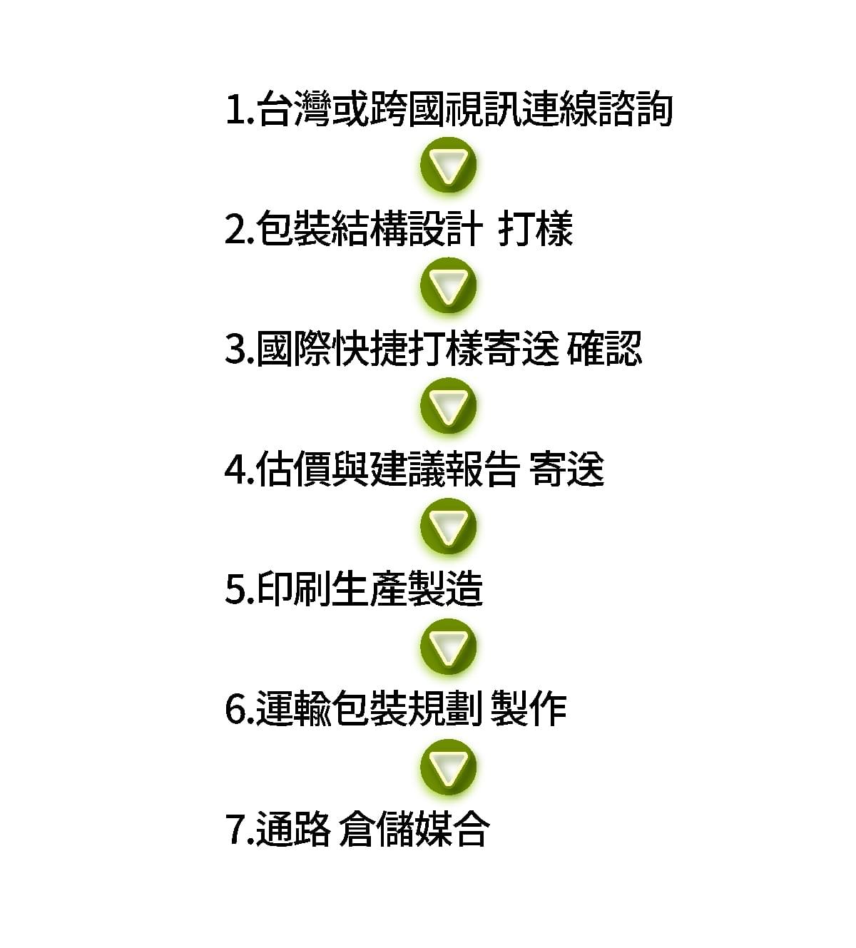 運用線上視訊跨國服務,郵寄打樣,確認樣式,提供完整的產品包裝,運輸包裝規劃。